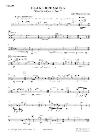 Blake Dreaming 'Goodison Quartet No. 5' Baritone Voice and String Quartet Set of Parts