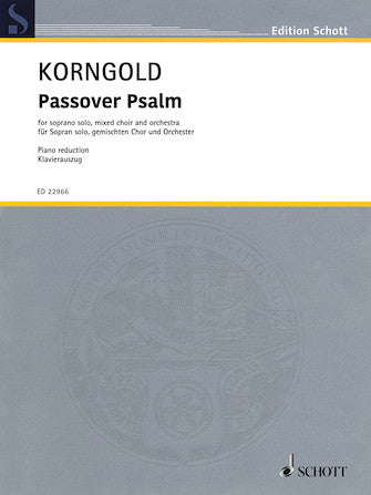 Composer: Erich Wolfgang KorngoldPassover Psalm, Op. 30Hymn to Hebrew Prayers from the Haggadah Vocal Piano ScorePublisher: SchottCategory: ChoralSeries: Vocal ScoreFormat: SoftcoverErich Wolfgang Korngold composed only two genuinely religious works: the Passover Psalm for soprano, mixed choir,...Regular price $63.99 -