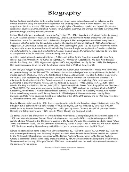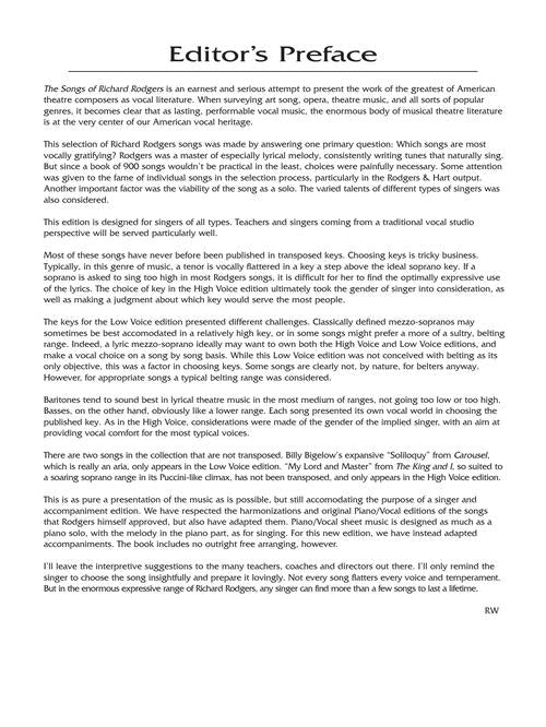 Author: Richard RodgersThe Songs of Richard RodgersLow VoicePublisher: Hal LeonardCategory: VocalSeries: Vocal CollectionFormat: SoftcoverThe most accomplished composer in the history of the American musical theatre was Richard Rodgers (1902-1979), with a professional career on Broadway that...Regular price $23.99