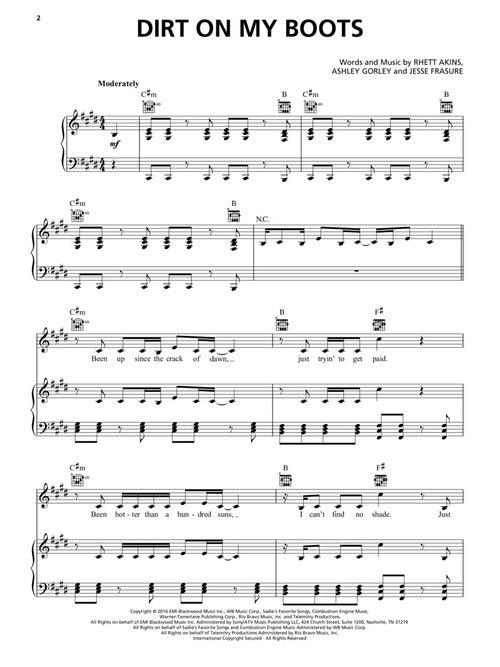 Dirt on My Boots (Jon Pardi) Piano Vocal