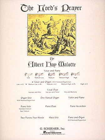 Lord's PrayerMedium Low Voice (B-Flat) and OrganPublisher: G. Schirmer, Inc.Category: ClassicalSeries: Vocal SoloFormat: PaperbackSheet MusicInventory # : 50279870UPC: 73999798708ISBN: 793553407Width: 9"Length: 12"Height: 0.024"Product Weight: 0.1 lbs.Number of Pages: 8 Condition: New Item# 50279870 Authorized DealerRegular price $8.99 -