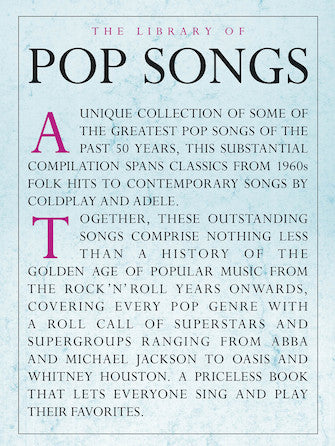 The Library of Pop SongsPublisher: Music Sales AmericaCategory: Keyboard & Piano/Vocal/GuitarSeries: Piano/Vocal/Guitar SongbookFormat: SoftcoverA unique collection of some of the greatest pop songs of the past 50 years, this substantial compilation spans classics from 1960s folk...Regular price $35.99 -