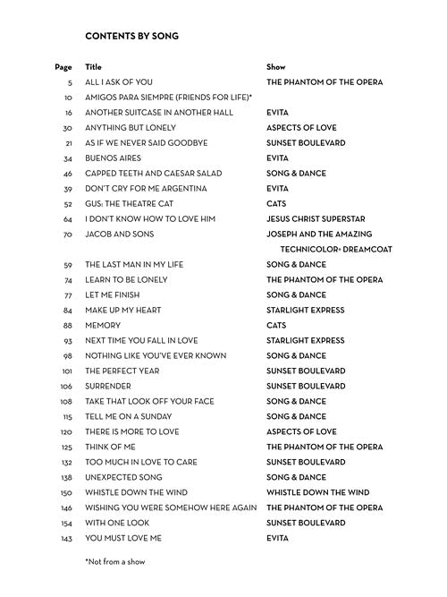 Hal Leonard Andrew Lloyd Webber For Singers 30 Songs - Women'S Edition