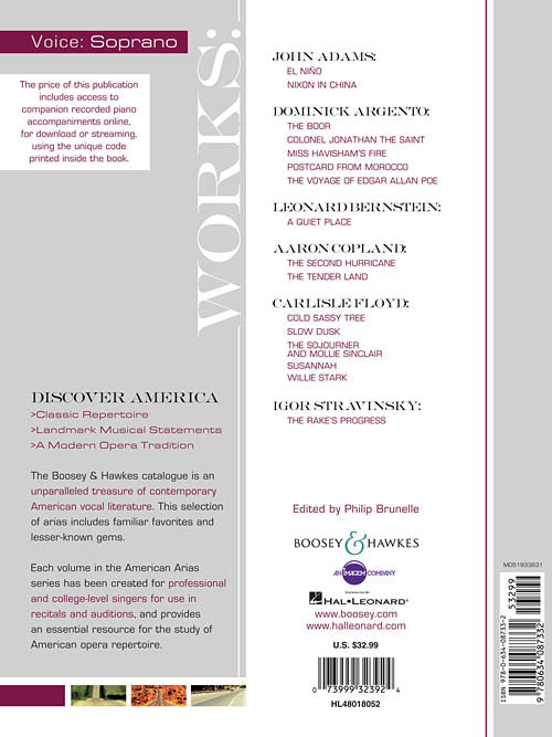 American AriasSopranoPublisher: Boosey & HawkesCategory: VocalSeries: Boosey & Hawkes VoiceFormat: Softcover Audio OnlineThe Boosey & Hawkes catalog is one of the greatest treasures of contemporary American vocal literature. Contents: EL NINO: Magnificat · NIXON IN CHINA:...Regular price $41.99 -