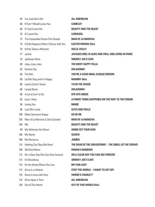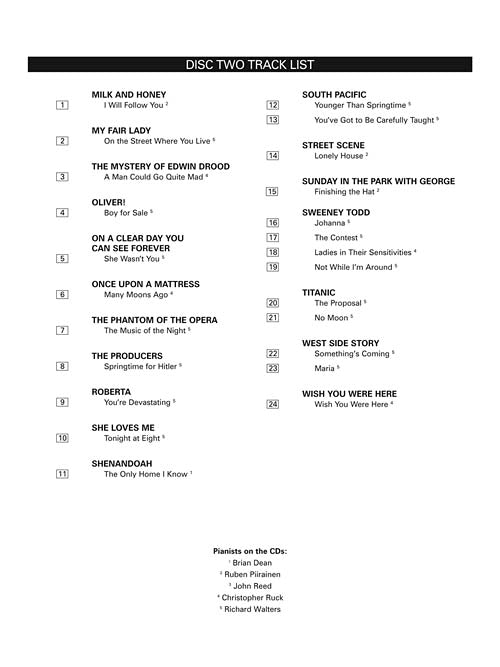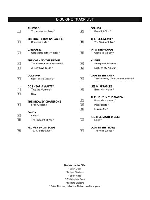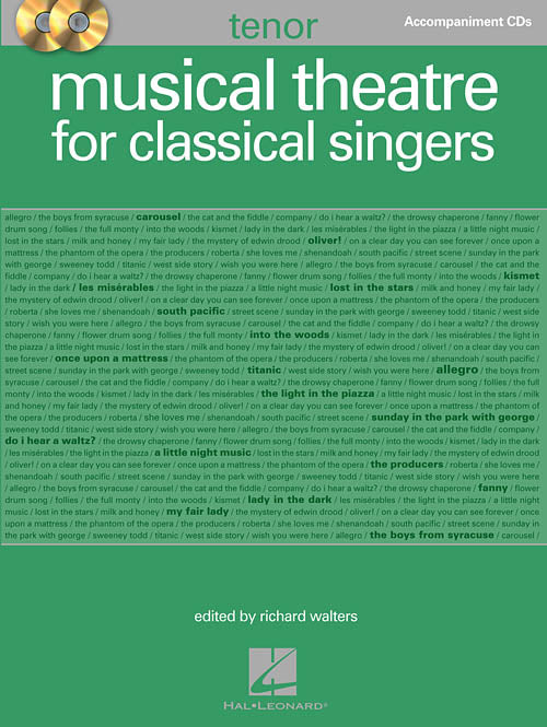 Musical Theatre for Classical SingersTenor, Accompaniment CDsCDThese CDs feature piano accompaniments to all the songs included in the corresponding songbook. 48 songs. Contents: Beautiful Girls (Follies) · Boy for Sale (Oliver!) · The Breeze Kissed Your...Regular price $35.99 -