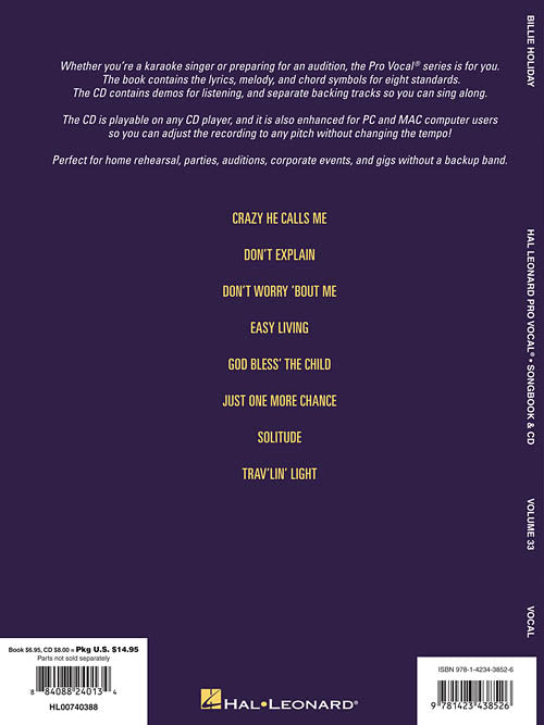 Billie Holiday Pro Vocal Women's Edition Volume 33