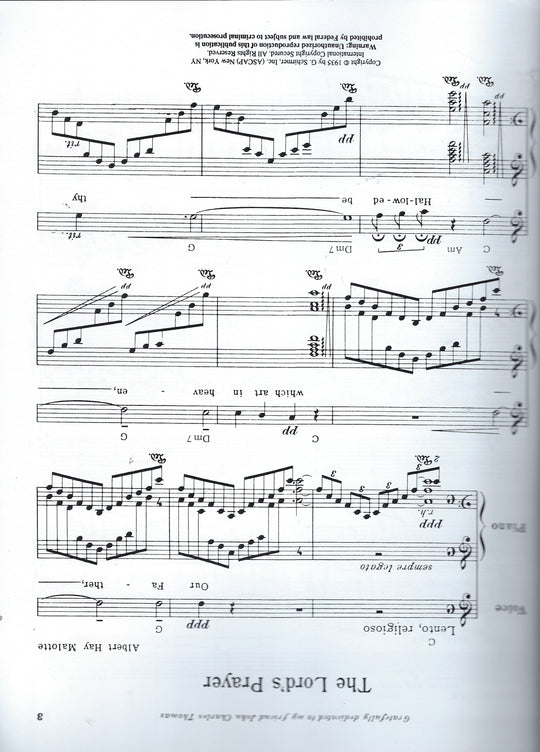 Lord's PrayerMedium Voice (in C) and PianoPublisher: G. Schirmer, Inc.Category: ClassicalSeries: Vocal SoloFormat: PaperbackSheet MusicInventory # : 50281100UPC: 73999388008ISBN: 793553172Width: 9"Length: 12"Height: 0.016"Product Weight: 0.1 lbs.Number of Pages: 8 Condition: New Item# 50281100 Authorized DealerRegular price $4.99