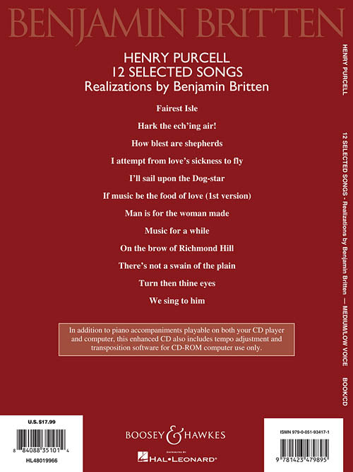 Henry Purcell: 12 Selected Songs Realizations by Benjamin Britten Medium/Low Voi