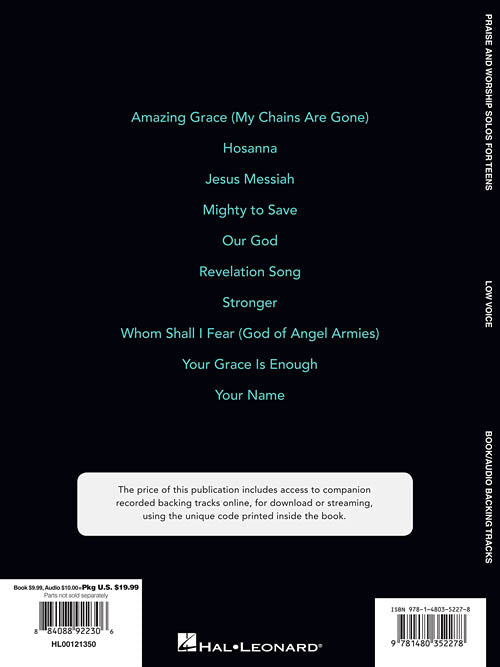 Hal Leonard Praise And Worship Solos For Teens Low Voice Includes Online Audio B