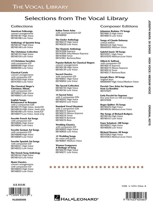Joseph Marx - 30 Songs Original Keys For High Voice/Medium Voice The Vocal Libr