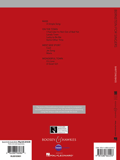 Boosey & Hawkes Bernstein For Singers - Baritone/Bass With Piano Accompaniments