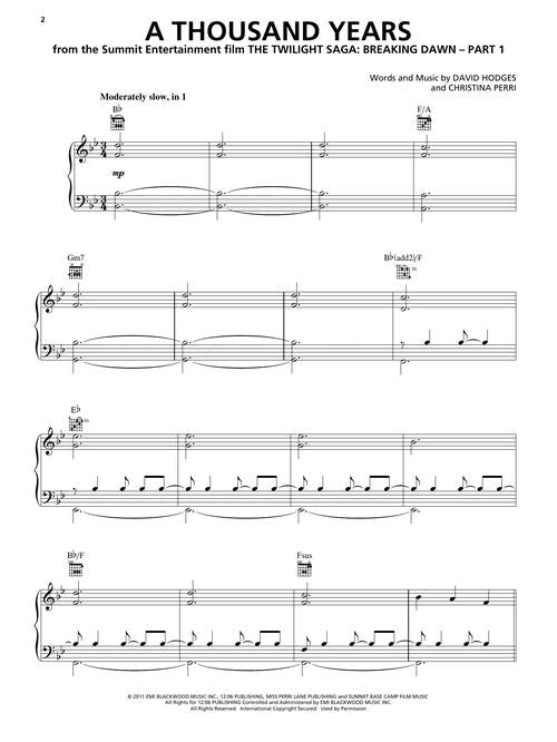 A Thousand Years (Christina Perri) Piano Vocal