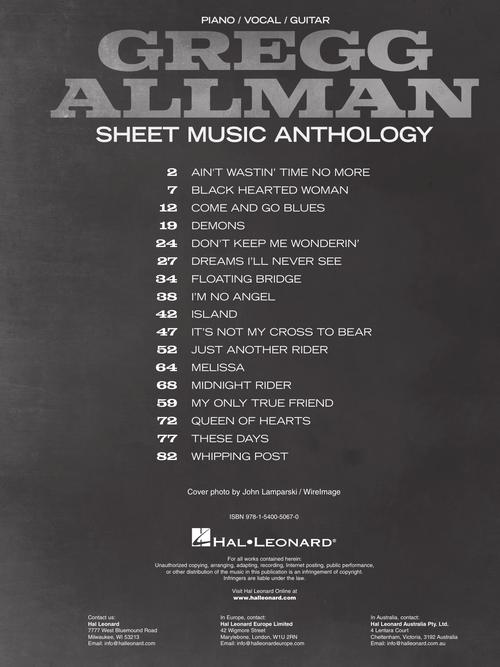 Gregg Allman Sheet Music Anthology Piano/Vocal/Guitar Artist Songbook