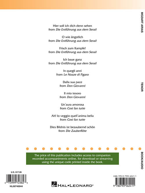 Mozart Arias for TenorThe Vocal LibraryPublisher: Hal LeonardCategory: VocalSeries: Vocal CollectionFormat: Softcover Audio OnlineTen lyric arias with recorded accompaniments (Robert L. Larsen, pianist). Edited by Robert L. Larsen and Richard Walters. With historical notes, plot synopses,...Regular price $21.99 -