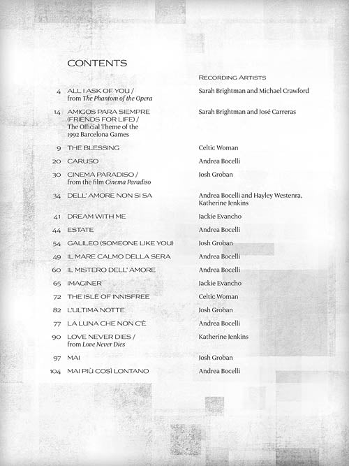Classical Crossover for SingersVoice and PianoPublisher: Hal LeonardCategory: VocalSeries: Vocal CollectionFormat: Paperback36 songs recorded by well-known artists, including: Andrea Bocelli, Josh Groban, Jackie Evancho, Sarah Brightman, Il Divo, Charlotte Church, Il Volo, and others.Inventory # :...Regular price $26.99 -