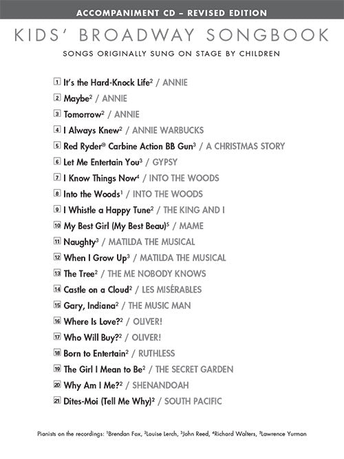 Kids' Broadway Songbook (Accompaniment CD) Accompaniment CD