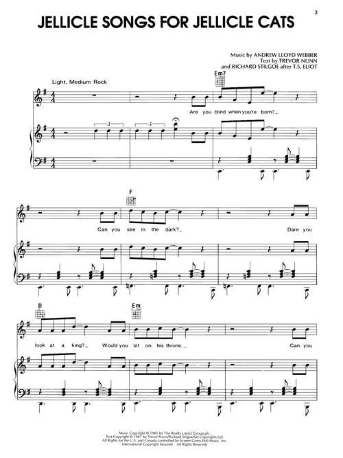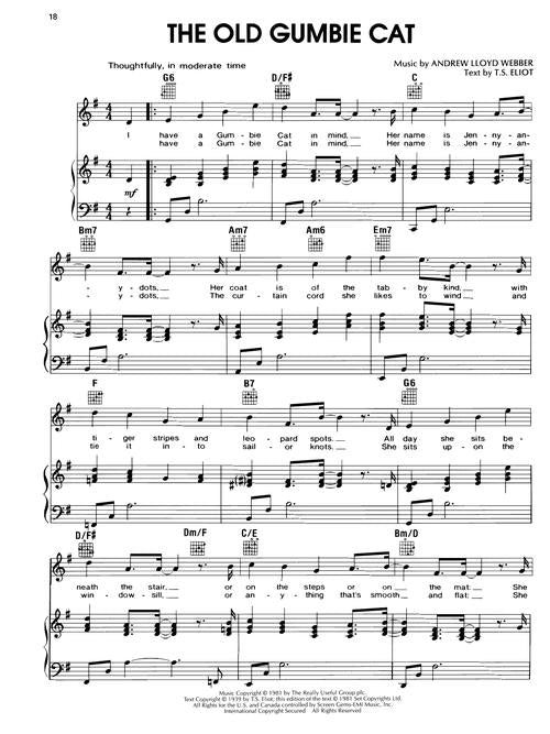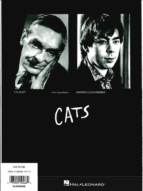 Composer: Andrew Lloyd WebberCatsVocal SelectionsPublisher: Hal LeonardCategory: Keyboard & Piano/Vocal/GuitarSeries: Vocal SelectionsFormat: PaperbackThis outstanding collection features ten top songs from Andrew Lloyd Webber's beloved musical: The Ad-dressing of Cats · Bustopher Jones: The Cat About Town...Regular price $31.99 -