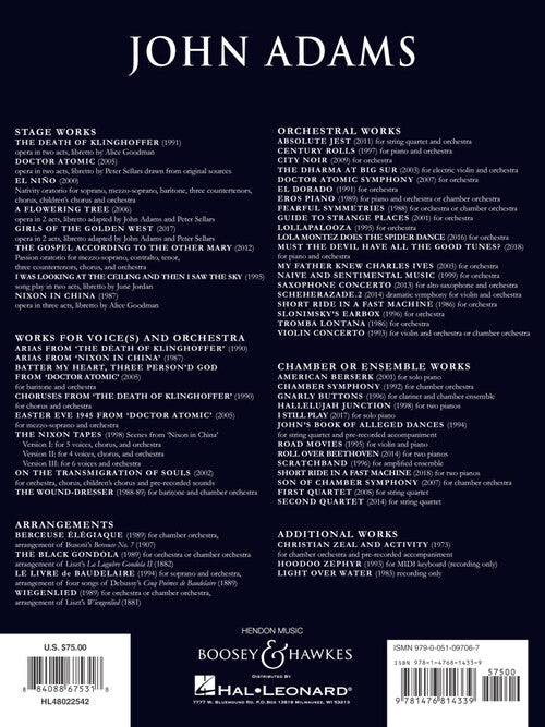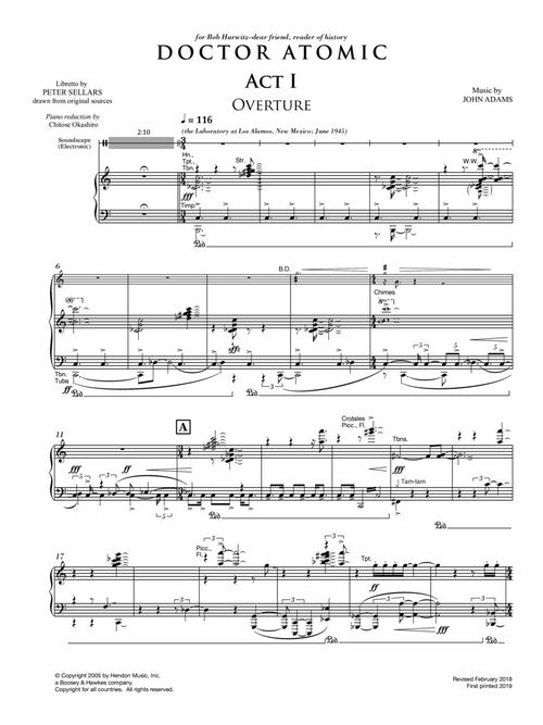 Composer: John AdamsDoctor AtomicOpera Vocal Score Archive EditionPublisher: Boosey & HawkesCategory: VocalSeries: BH Stage WorksFormat: SoftcoverDoctor Atomic Opera Vocal Score Archive EditionInventory # : 48022542UPC: 884088675318ISBN: 1476814333Width: 9"Length: 12"Height: 0.877"Product Weight: 2.8 lbs.Number of Pages: 338...Regular price $89.99 -
