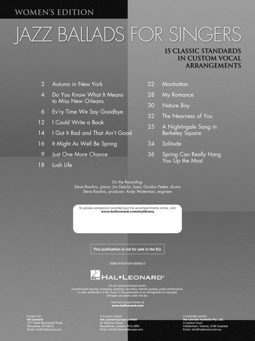 Jazz Ballads for Singers - Women's Edition 15 Classic Standards in Custom Vocal