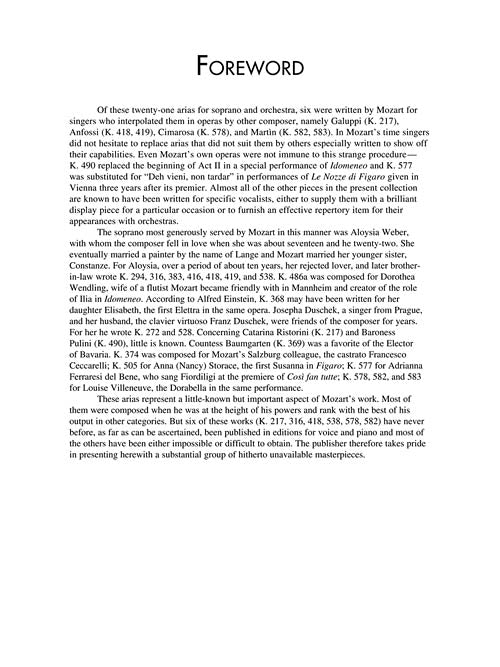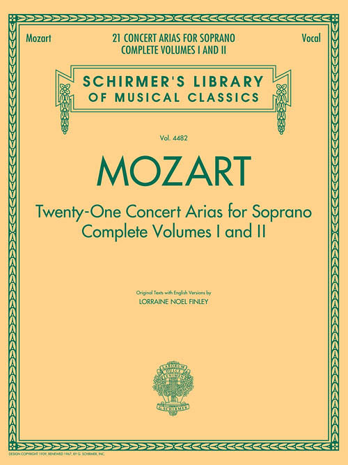 Mozart - 21 Concert Arias for SopranoSchirmer Library of Classics Volume 4482Publisher: G. Schirmer, Inc.Category: VocalSeries: VocalFormat: PaperbackCollected for the first time in one convenient and inexpensive edition. Contents: Voi avete un cor fedele, K. 217...Regular price $29.99 -