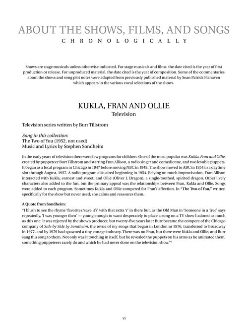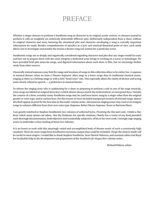 Sondheim for SingersSoprano (43 Songs)Publisher: Rilting Music, Inc.Category: VocalSeries: Vocal CollectionFormat: PaperbackThe most comprehensive, multi-volume collection of Sondheim songs ever published. Each volume has a different contents list. The volumes include songs in original keys, and...Regular price $35.99 -