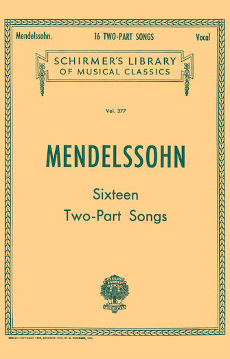 16 Two-part SongsSchirmer Library of Classics Volume 377 Vocal DuetsPublisher: G. Schirmer, Inc.Category: ClassicalSeries: Vocal EnsembleFormat: PaperbackContents: Autumn Song · By the Plashing Fount I Stand · Evening Song · Farewell Song/Birds of Passage · For...Regular price $20.99
