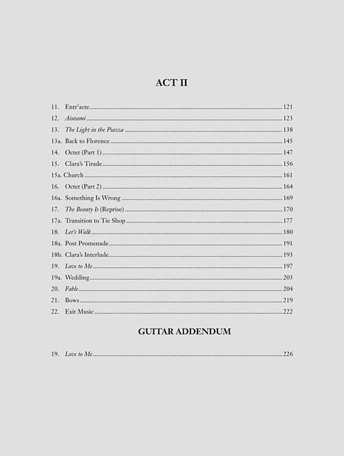 The Light in the PiazzaVocal ScorePublisher: Hal LeonardCategory: VocalSeries: Vocal ScoreFormat: SoftcoverThe New York Times calls this Tony® Award-winning Adam Guettel musical the most intensely romantic score of any Broadway musical since West Side Story. 16...Regular price $89.99 -