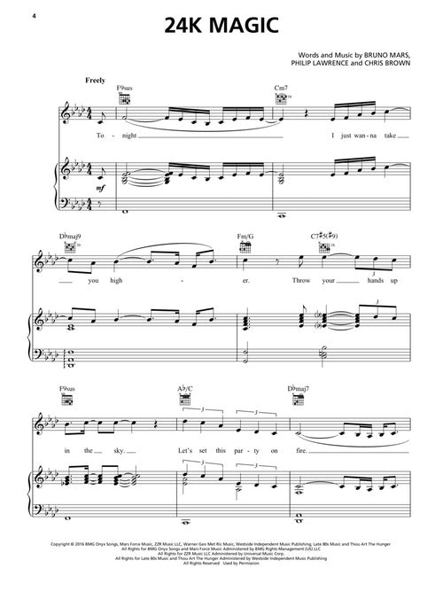 Bruno Mars - 24K Magic Piano/Vocal/Guitar Artist Songbook