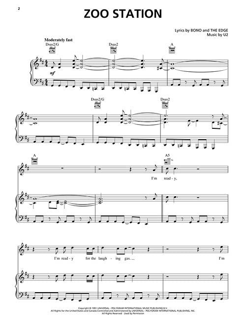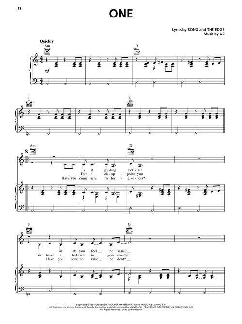 U2 - Achtung Baby Piano/Vocal/Guitar Artist Songbook