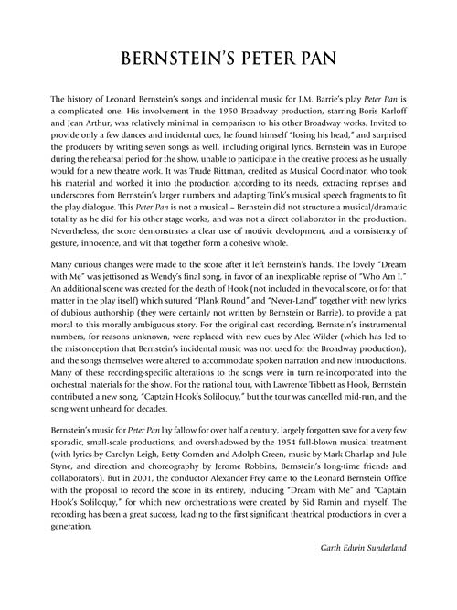 Composer: Leonard BernsteinPeter PanFirst EditionPublisher: Boosey & HawkesCategory: VocalSeries: Vocal SelectionsFormat: PaperbackEight songs from the 1950 Broadway play with music, including: Who Am I? · My House · Captain Hook's Soliloquy · Dream with Me ·...Regular price $20.99 -