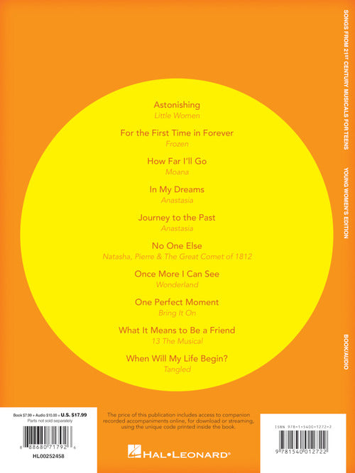 Songs from 21st Century Musicals for Teens: Young Women's EditionBook with Recorded Accompaniments OnlinePublisher: Hal LeonardCategory: VocalSeries: Vocal CollectionFormat: Softcover Audio OnlineThis collection of contemporary musical songs features several titles never before available in mixed folios....Regular price $21.99 -