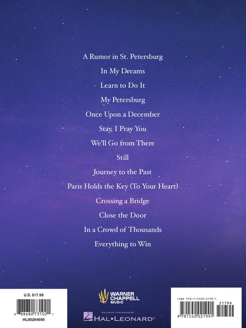 AnastasiaThe New Broadway MusicalPublisher: Hal LeonardCategory: Keyboard & Piano/Vocal/GuitarSeries: Easy Piano Vocal SelectionsFormat: SoftcoverThis hit musical, inspired by the Twentieth Century Fox motion picture, came to Broadway in April 2017. This collections features easy piano arrangements...Regular price $21.99