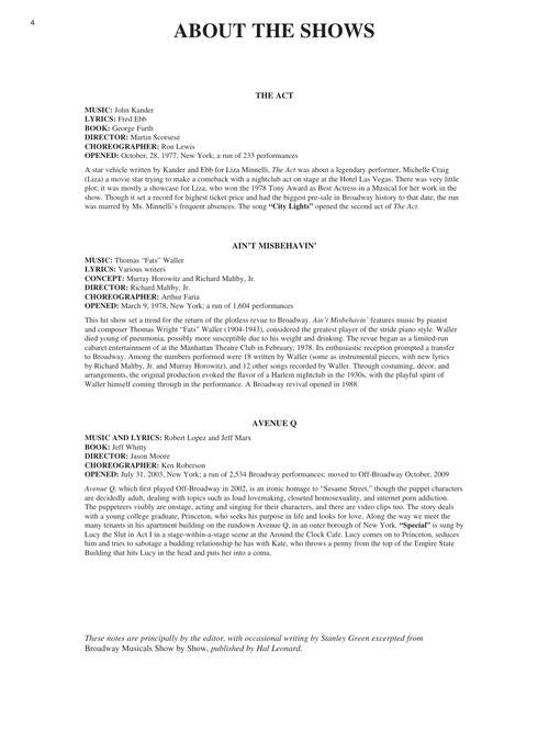 The Singer's Musical Theatre Anthology - Volume 5Mezzo-Soprano Book/Online AudioPublisher: Hal LeonardCategory: VocalSeries: Vocal CollectionFormat: Softcover Audio OnlineContents: THE ACT: City Lights · AIN'T MISBEHAVIN': Keepin' Out of Mischief Now · AVENUE Q: Special · THE...Regular price $53.99