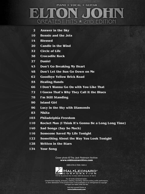 Elton John - Greatest Hits, 2nd Edition Piano/Vocal/Guitar Artist Songbook