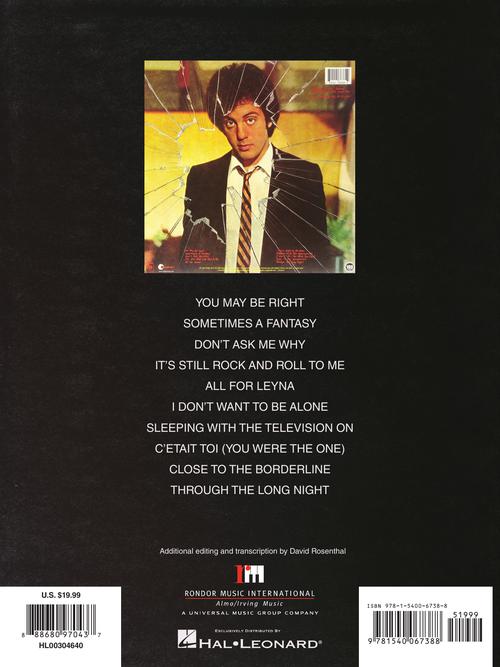 Billy Joel - Glass HousesAdditional Editing and Transcription by David RosenthalPublisher: Hal LeonardCategory: Keyboard & Piano/Vocal/GuitarSeries: Piano/Vocal/Guitar Artist SongbookFormat: SoftcoverBilly Joel's keyboardist and Music Director David Rosenthal has attentively arranged all the tracks from Joel's 1980...Regular price $23.99 -