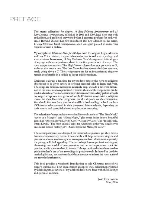 15 Easy Christmas Carol Arrangements - High Voicefor the Progressing SingerPublisher: Hal LeonardCategory: VocalSeries: Vocal CollectionFormat: Softcover Audio OnlineFresh arrangements for first and second year voice students, with intermediate level piano parts. Beyond educational use, it...Regular price $20.99 -