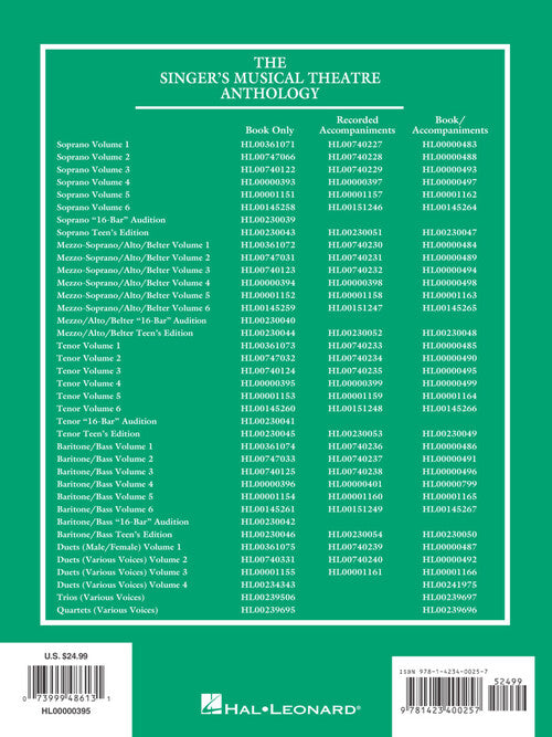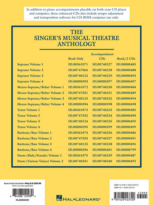Singer's Musical Theatre Anthology - Volume 1Duets Book/Online AudioPublisher: Hal LeonardCategory: VocalSeries: Vocal CollectionFormat: Softcover Audio OnlineThe world's most trusted source for great theatre literature for singing actors. The companion audio include piano accompaniments. The book...Regular price $53.99 -