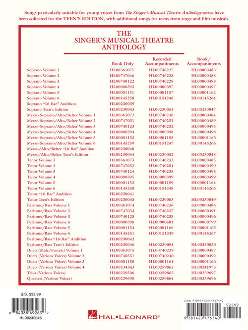 The Singer's Musical Theatre Anthology - Teen's Edition Baritone/Bass Book Only