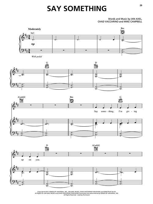 A Great Big World - Is There Anybody Out There?Publisher: Hal LeonardCategory: Keyboard & Piano/Vocal/GuitarSeries: Piano/Vocal/Guitar Artist SongbookFormat: SoftcoverA melodic singing/songwriting duo from New York City, A Great Big World burst onto the scene in 2013...Regular price $20.99 -