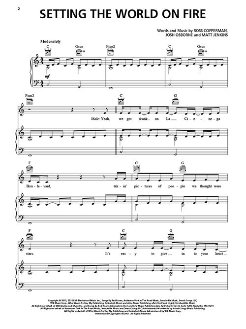 Setting the World on Fire (Kenny Chesney featuring P!nk) Piano Vocal