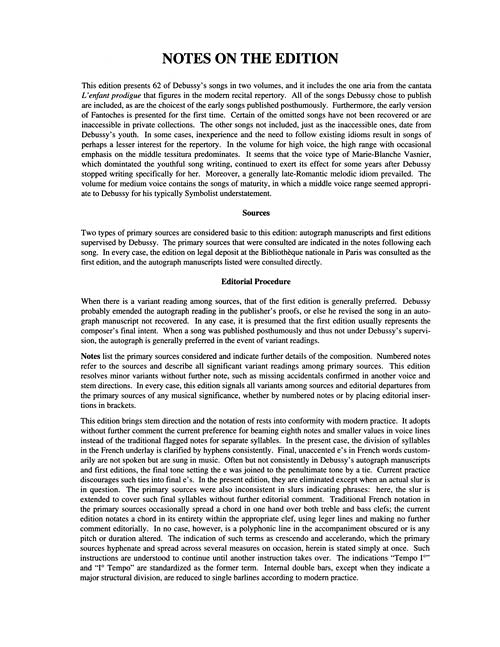 Songs of Claude Debussy - Volume II The Vocal Library Medium Voice