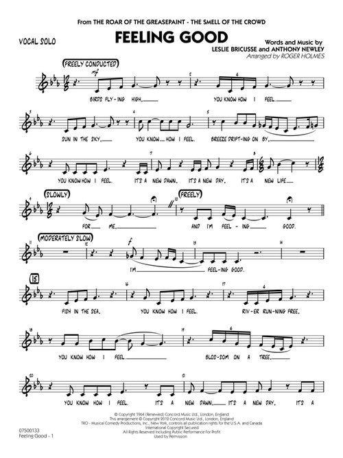 Feeling Good (Key: Cmi)Publisher: Hal LeonardCategory: VocalSeries: Vocal Solo/Jazz Ensemble SeriesFormat: PaperbackFrom the Broadway musical The Roar of the Greasepaint, The Smell of the Crowd, this fabulous standard is popular again with a stunning rendition by...Regular price $65.99