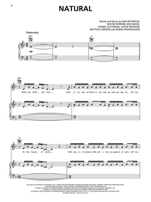 Imagine Dragons - OriginsPublisher: Hal LeonardCategory: Keyboard & Piano/Vocal/GuitarSeries: Piano/Vocal/Guitar Artist SongbookFormat: SoftcoverImagine Dragons keeps churning out the hits, and this 2018 album which reached #2 on the Billboard® 200 album charts is no exception. This...Regular price $21.99