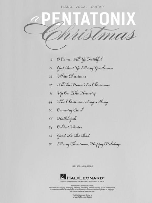 A Pentatonix ChristmasPublisher: Hal LeonardCategory: Keyboard & Piano/Vocal/GuitarSeries: Piano/Vocal/Guitar Artist SongbookFormat: SoftcoverThis 2016 holiday release by a cappella pop sensation Pentatonix reached #1 on the Billboard® 200 album charts and includes two new original songs, Good...Regular price $27.99 -