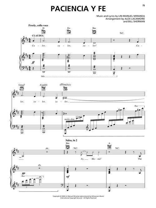 Composer: Lin-Manuel MirandaIn the HeightsPublisher: Hal LeonardCategory: Keyboard & Piano/Vocal/GuitarSeries: Vocal SelectionsFormat: SoftcoverThe 2008 Broadway musical In the Heights explores three days in the characters' lives in the New York City Latino neighborhood of Washington Heights,...Regular price $29.99 -