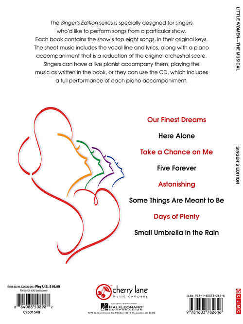 Composer: Jason HowlandLittle Women - The MusicalSinger's EditionPublisher: Cherry Lane MusicCategory: Keyboard & Piano/Vocal/GuitarSeries: Vocal PianoFormat: Softcover with CDThe Singer's Edition series is specially designed for singers who'd like to perform songs from a particular show....Regular price $20.99 -