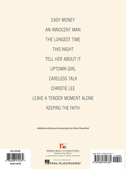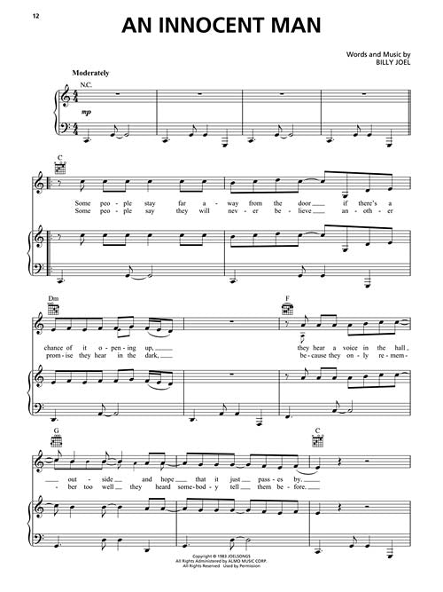 Billy Joel - An Innocent ManPublisher: Hal LeonardCategory: Keyboard & Piano/Vocal/GuitarSeries: Piano/Vocal/Guitar Artist SongbookFormat: SoftcoverDavid Rosenthal, Billy's keyboardist and Music Director, has carefully arranged all the tracks from Joel's 1983 release, combining the piano parts and...Regular price $20.99 -