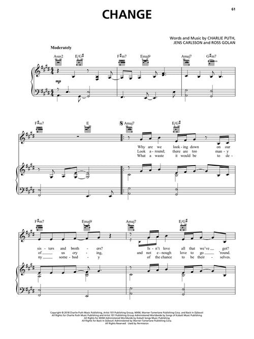 Charlie Puth - Voicenotes Piano/Vocal/Guitar Artist Songbook
