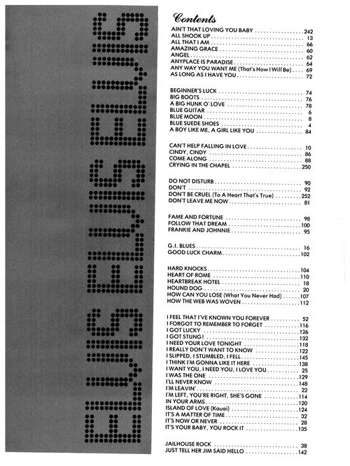 Elvis Elvis Elvis - 100 Greatest HitsPublisher: Hal LeonardCategory: Keyboard & Piano/Vocal/GuitarSeries: Piano/Vocal/Guitar Artist SongbookFormat: Paperback100 of his immortal hits, including: All Shook Up · Amazing Grace · Blue Suede Shoes · Crying in the Chapel...Regular price $41.99 -