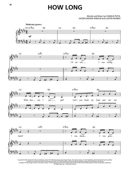 Charlie Puth - VoicenotesPublisher: Hal LeonardCategory: Keyboard & Piano/Vocal/GuitarSeries: Piano/Vocal/Guitar Artist SongbookFormat: SoftcoverThis songbook features piano/vocal/guitar arrangements of all 13 tracks from Puth's second album: Attention · Boy · Change · Done for Me · Empty...Regular price $23.99 -